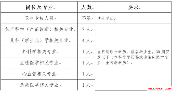 普通高等院校醫療、醫技系列相關專業,碩士學歷,應屆畢業生,30周歲及以下;護理相關專業,全日制本科學歷,應屆畢業生,28周歲及以下。