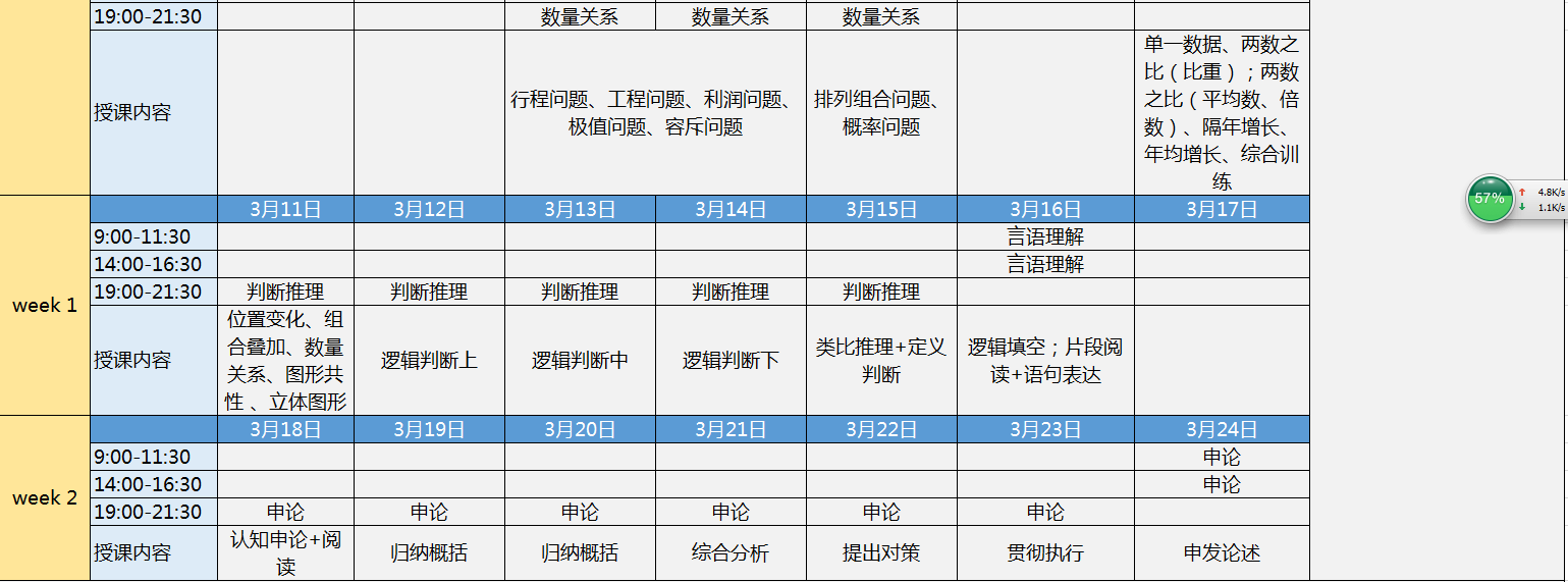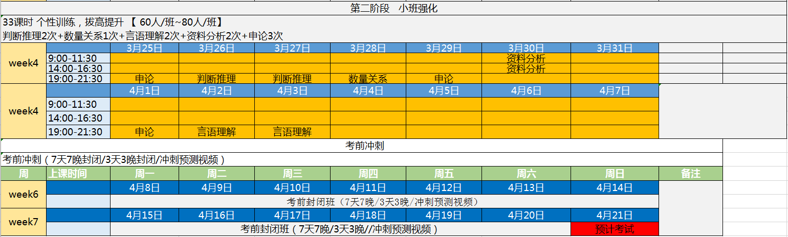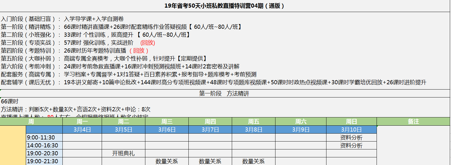 2019年省考50天小班私教直播特訓營04期課程安排