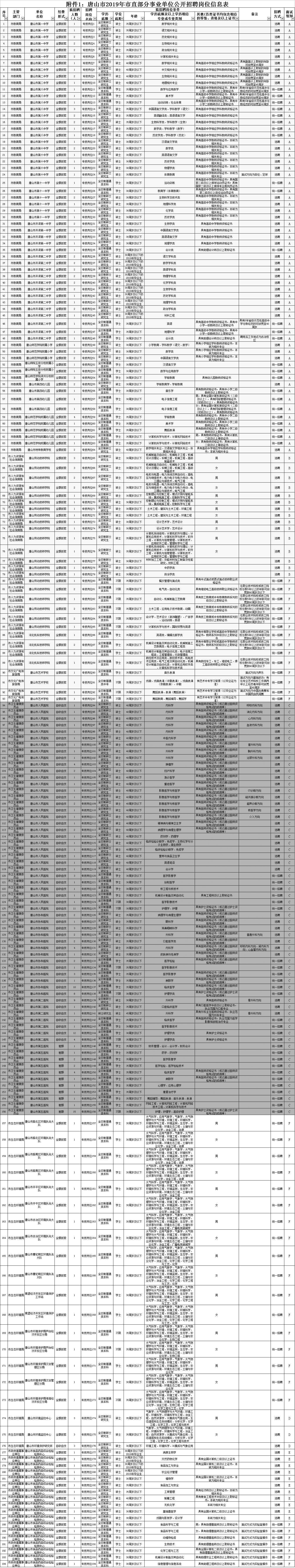 《附件1:唐山市2019年市直部分事業單位公開招聘崗位信息表》(點擊下載)