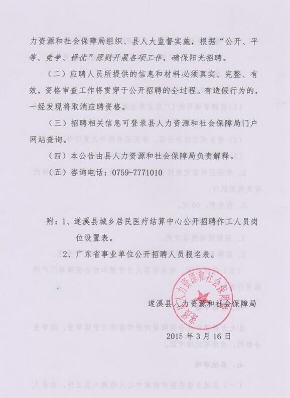 2015廣東遂溪縣突發(fā)事件預(yù)警信息發(fā)布中心招聘公告【4人】