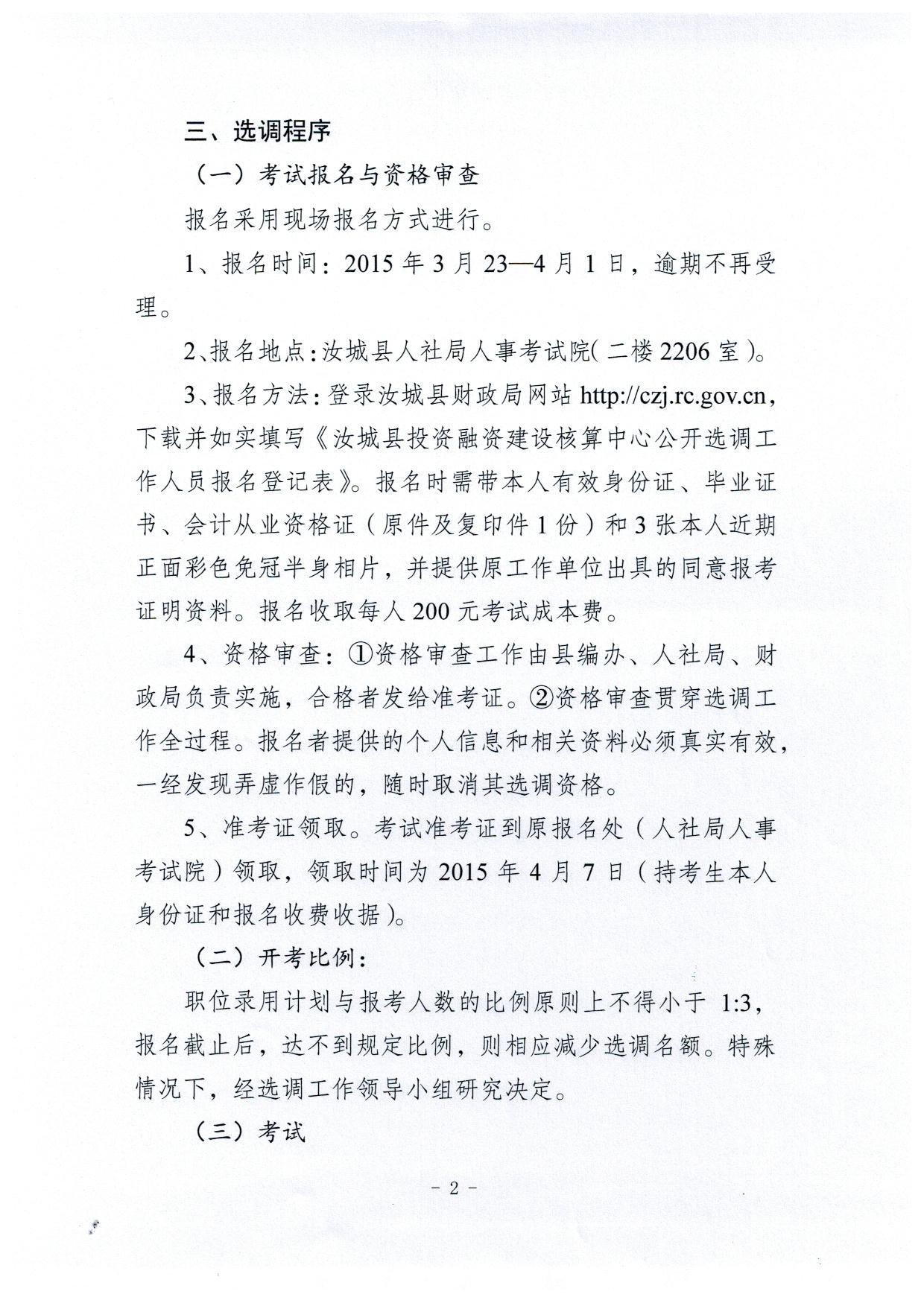 2015年湖南省汝城縣財政局投資融資建設核算中心選調公告