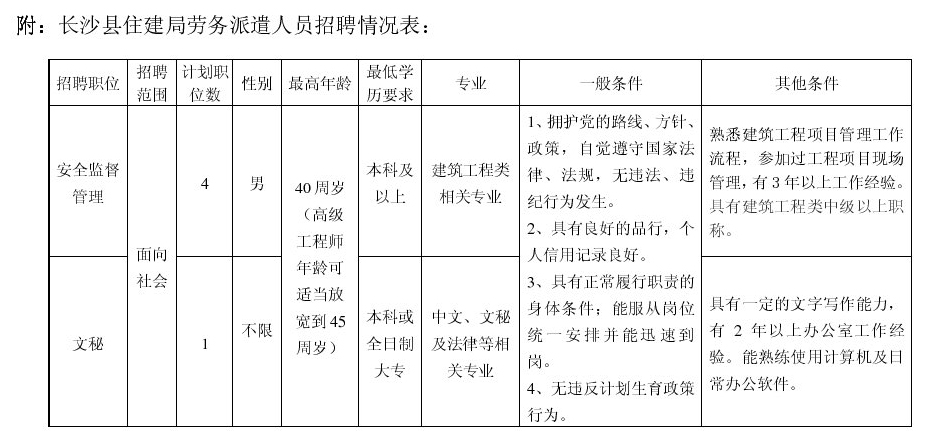 原標題:長沙縣住房和城鄉建設局招聘勞務派遣人員簡章
