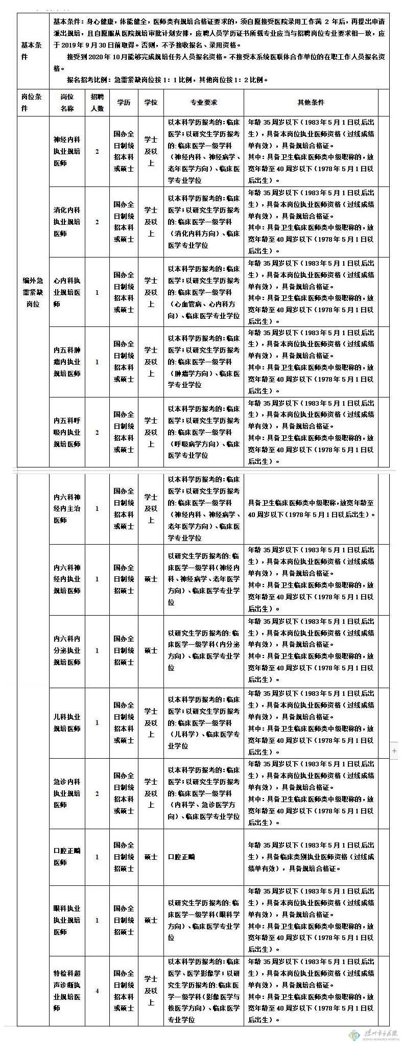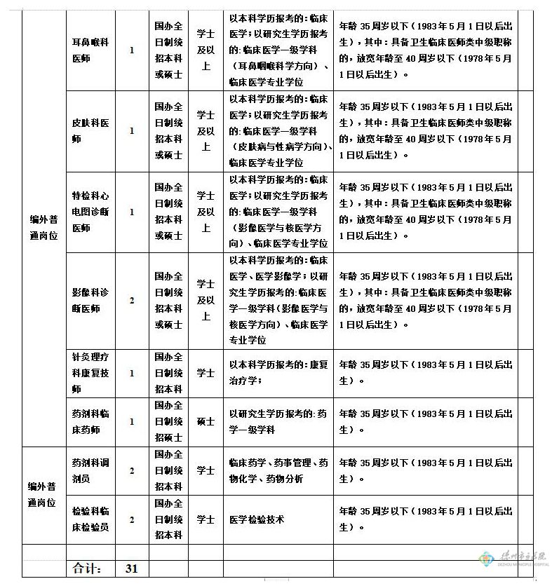 2019年德州市立醫院院部第二批自主招聘臨床醫技崗位招考簡章(31人)