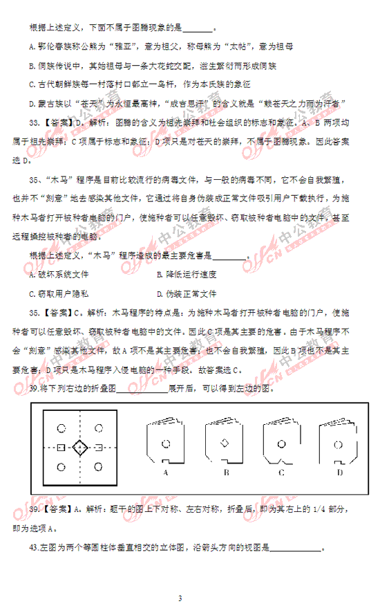 2012年上海市公務(wù)員考試行測(A卷)部分及答案解析