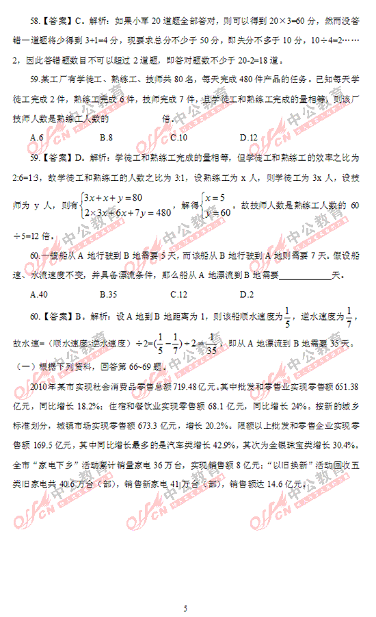 2012年上海市公務員考試行測(A卷)部分及答案解析