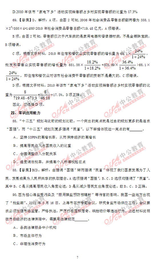 2012年上海市公務(wù)員考試行測(A卷)部分及答案解析