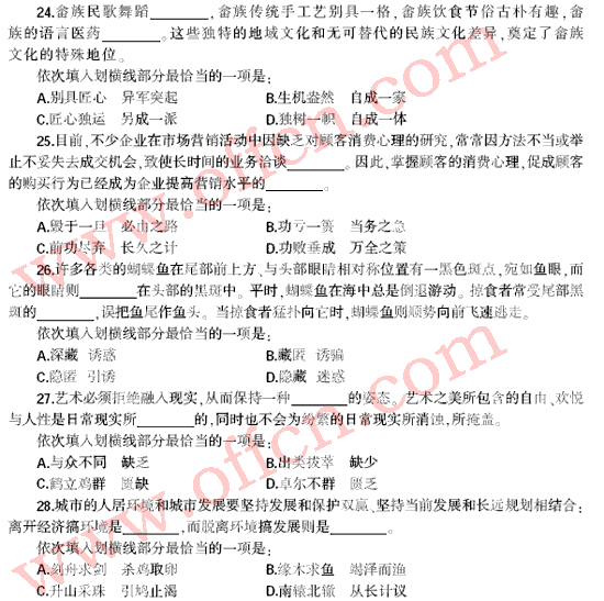 2012年福建公務(wù)員行測(cè)