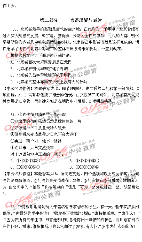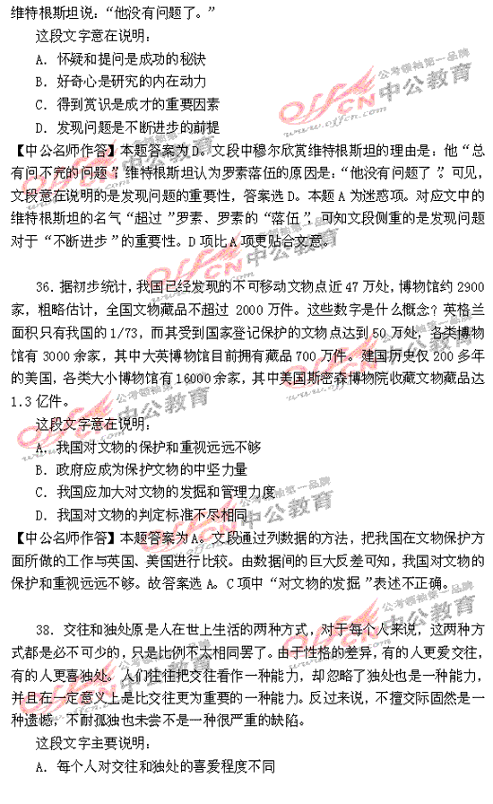 福建省2010年秋季公務員考試行測及解析