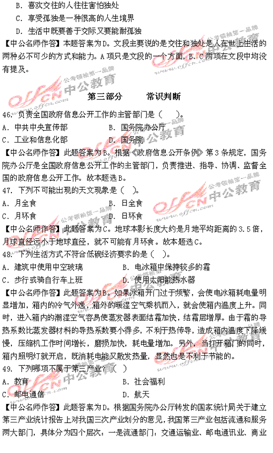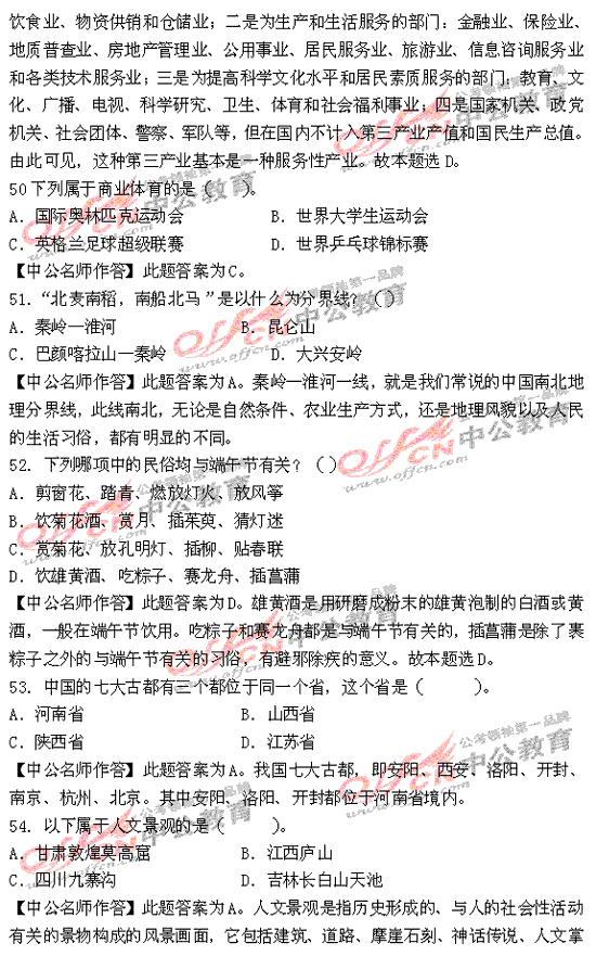 福建省2010年秋季公務員考試行測及解析
