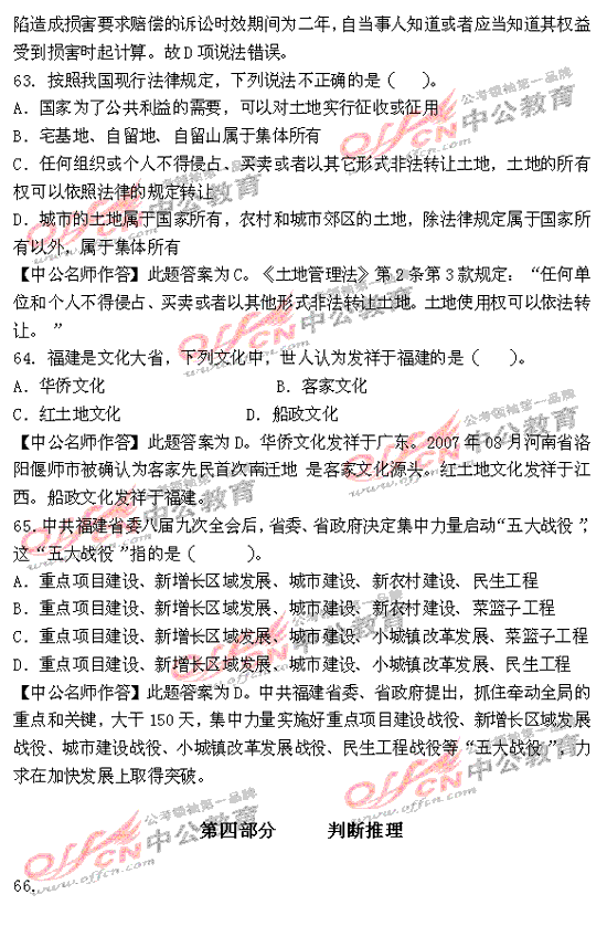 福建省2010年秋季公務員考試行測及解析