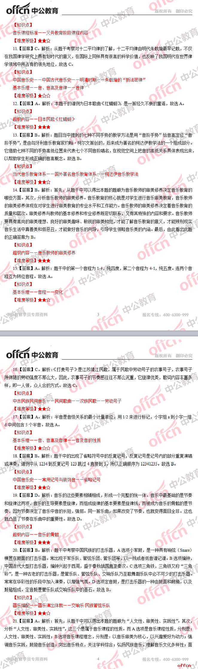 2017年江西教師招聘《小學音樂》試題答案及解析