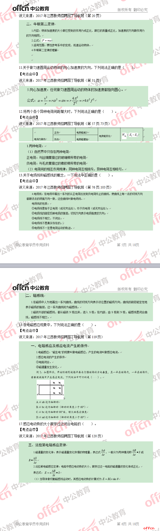2017年江西教師招聘《高中物理》試題答案及解析