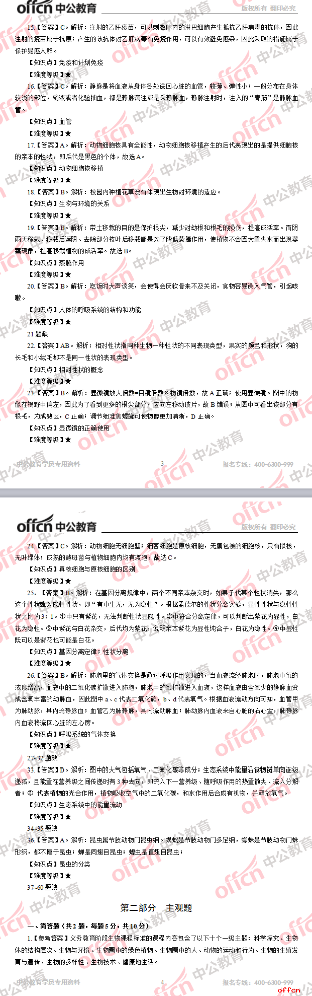 2017年江西教師招聘《初中生物》試題答案及解析