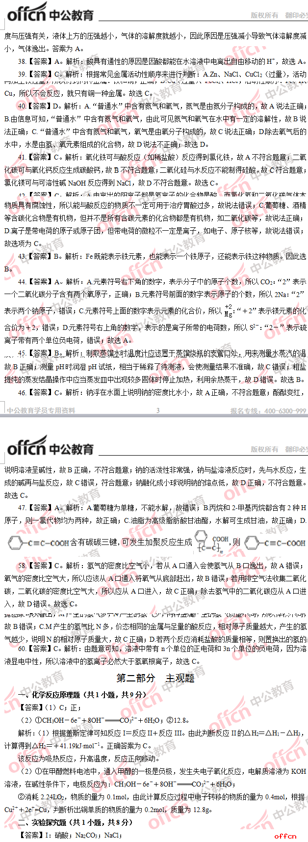 2017年江西教師招聘《初中化學(xué)》試題答案及解析