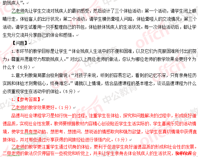 2017年江西教師招聘《小學品德》試題答案及解析