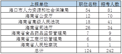 2018海南公務員考試海口市計劃招錄242人,124個職位,較去年有所減少!