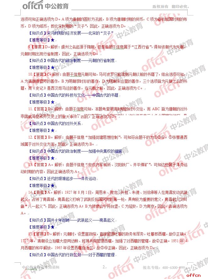 2017年江西教師招聘《初中歷史》試題答案及解析