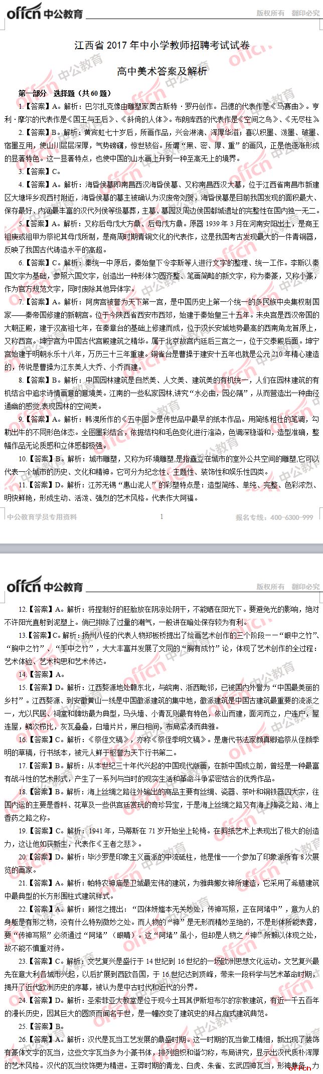 2017年江西教師招聘《高中美術(shù)》試題答案及解析