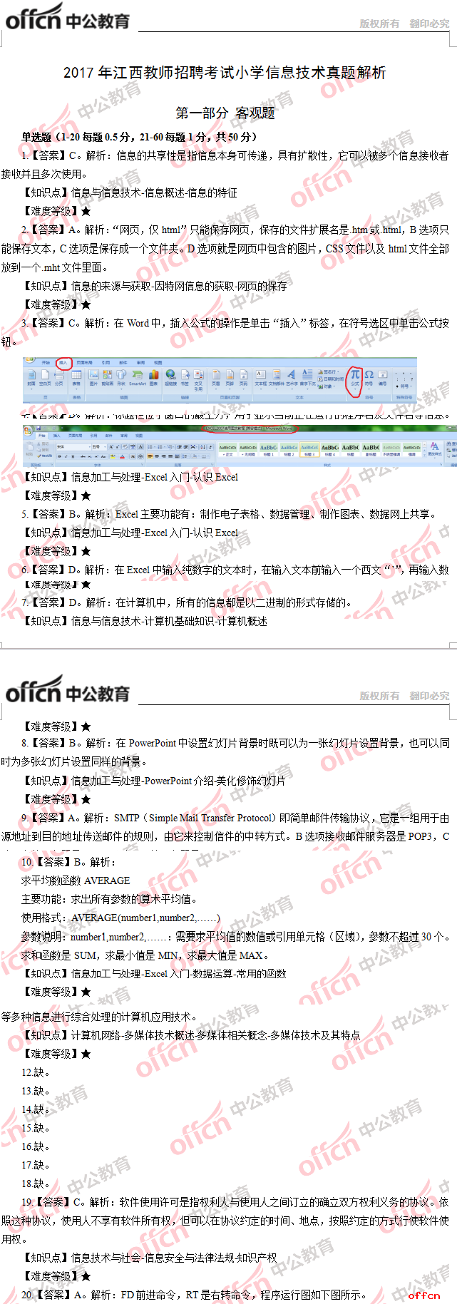 2017年江西教師招聘《小學信息技術》試題答案及解析